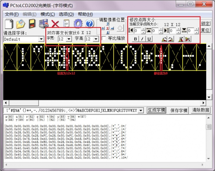 - 6x12英文ASCII取模数据